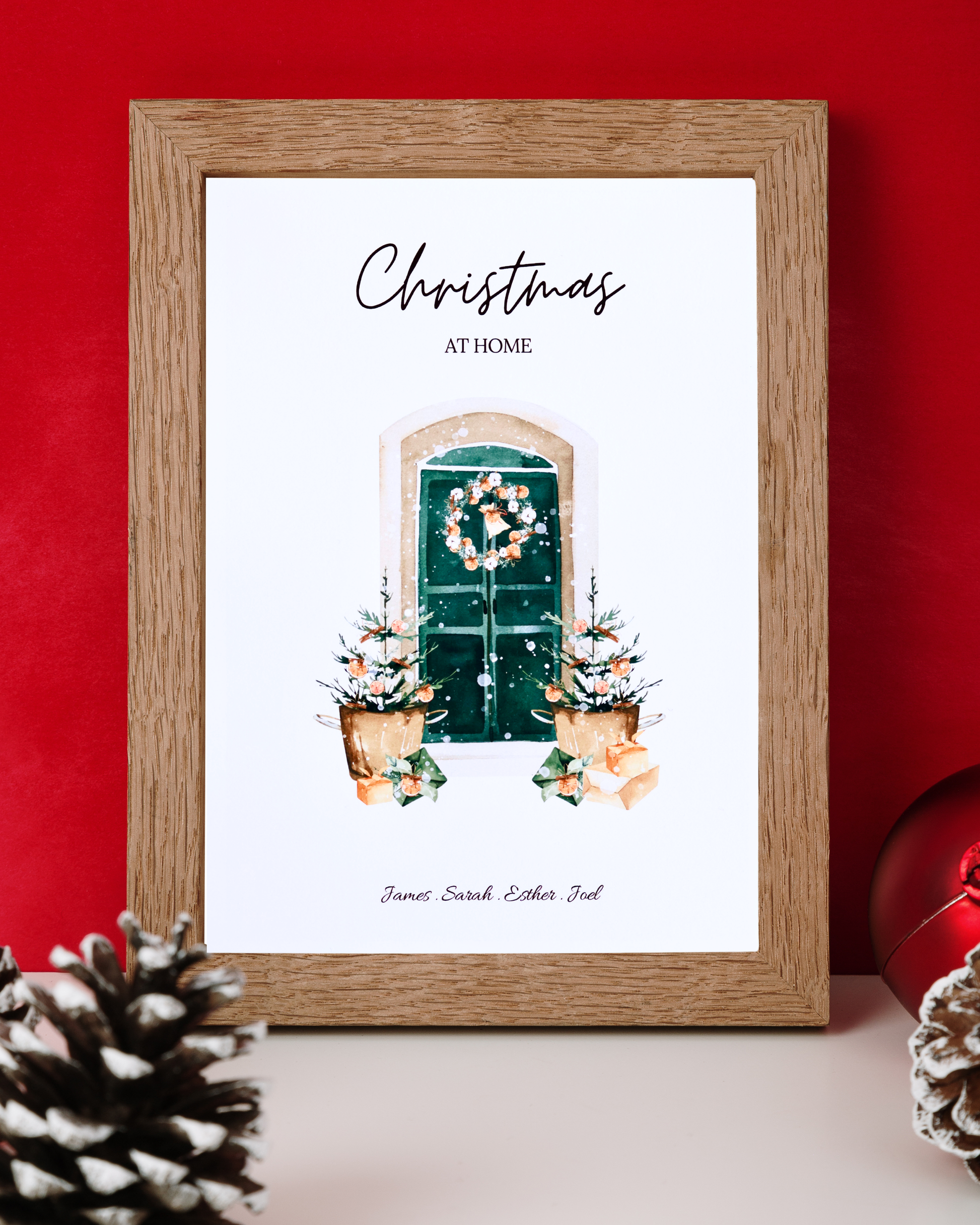Personalised Home Christmas Print – Custom Family Names | Festive Wall Art (A4 / A5 / A6)